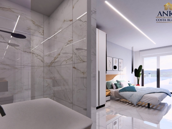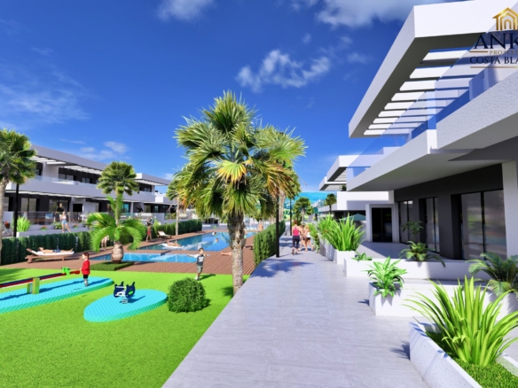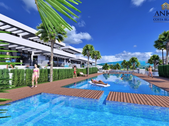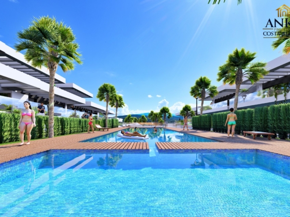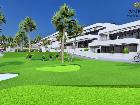 Choose between ground-floor bungalows with private gardens or penthouses with balcony and spacious solarium, perfect for enjoying panoramic views of the golf course and the year-round sunshine of the Costa Blanca. The development is surrounded by landscaped green areas, creating a serene atmosphere in a privileged setting right next to La Finca Golf.