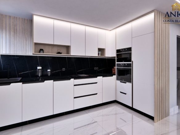 Chaque logement présente un design lumineux et ouvert, avec une cuisine entièrement équipée intégrée au salon pour un espace fluide et convivial. Avec 2 salles de bains complètes et des finitions haut de gamme dans toute la maison, les intérieurs reflètent un style moderne et sophistiqué, alliant praticité et élégance pour la vie quotidienne.