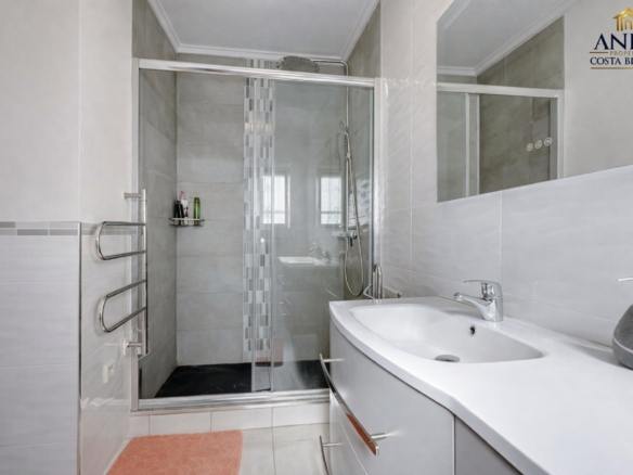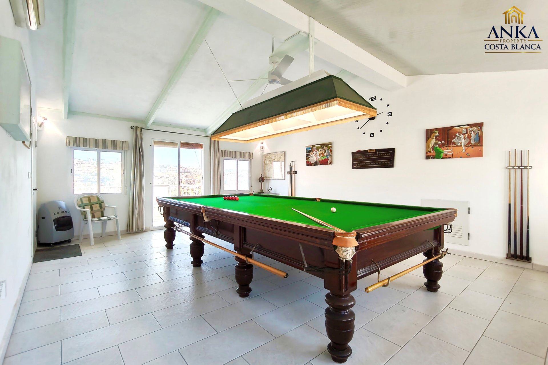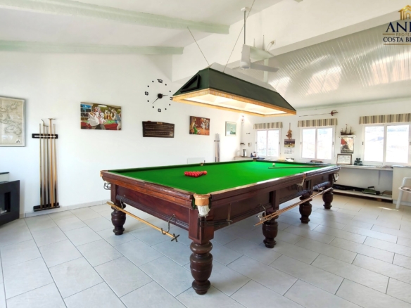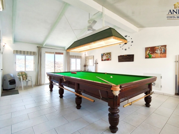 L’étage supérieur offre une grande polyvalence avec une vaste pièce actuellement utilisée comme salle de billard, un WC et un accès à une terrasse privée ainsi qu’à un solarium. Cet espace est idéal pour recevoir et pourrait facilement être transformé en quatrième chambre, suite invités ou espace de vie supplémentaire.