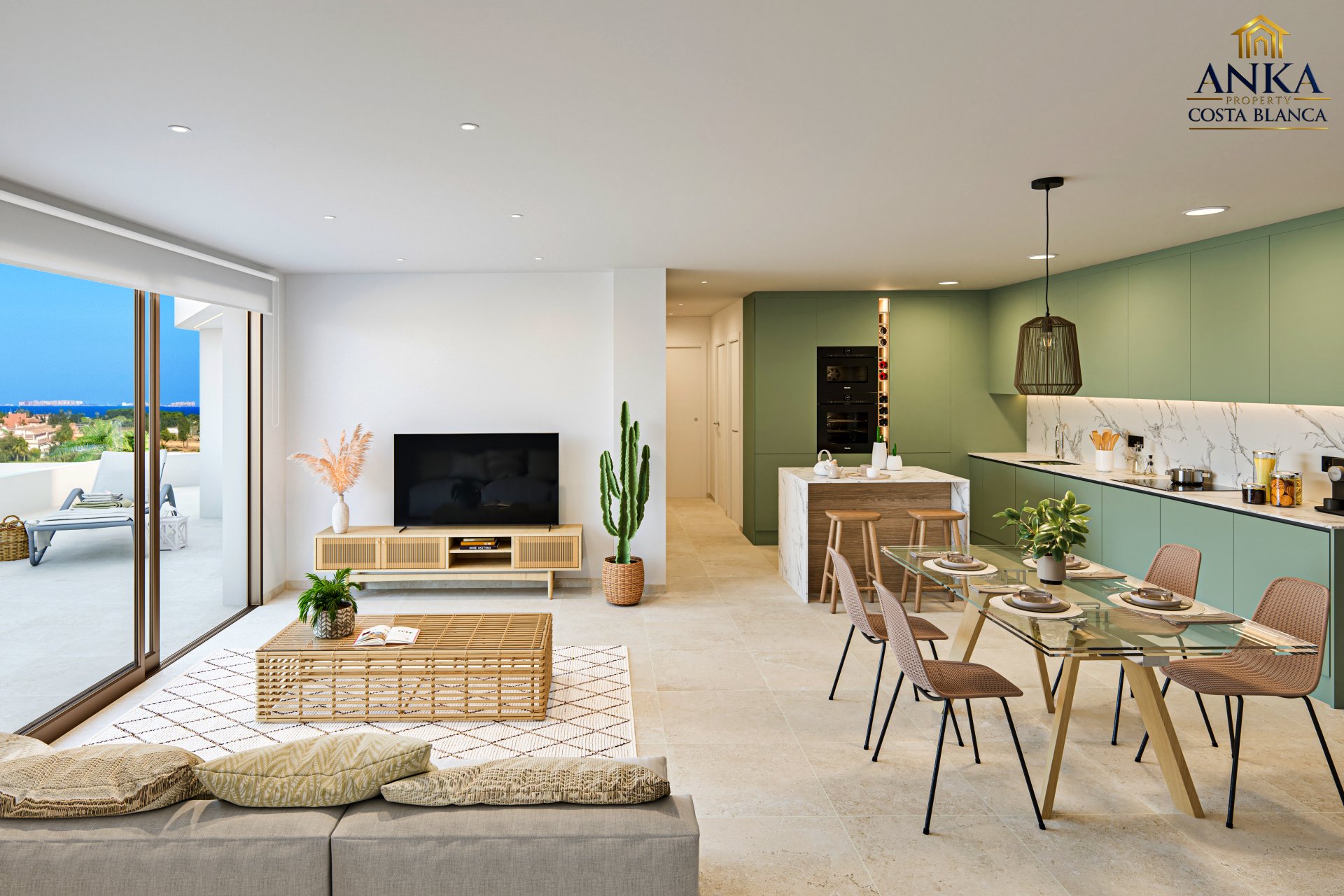 Wszystkie nieruchomości oferują przestronne salony z jadalnią w układzie otwartym, duże tarasy lub prywatne solaria oraz okna od podłogi do sufitu, które kadrują widoki na pole golfowe lub morze.