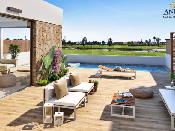 Otoczone śródziemnomorskim krajobrazem, zielonymi fairwayami i spokojnymi jeziorami, te nieruchomości oferują unikalny styl życia z widokiem na pole golfowe i morze Mar Menor.
