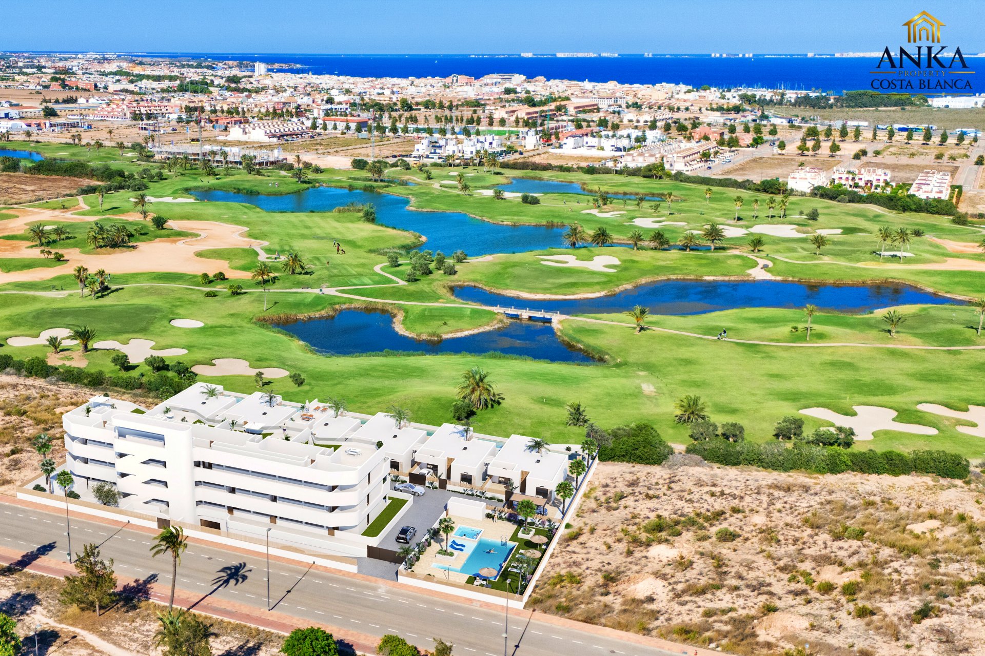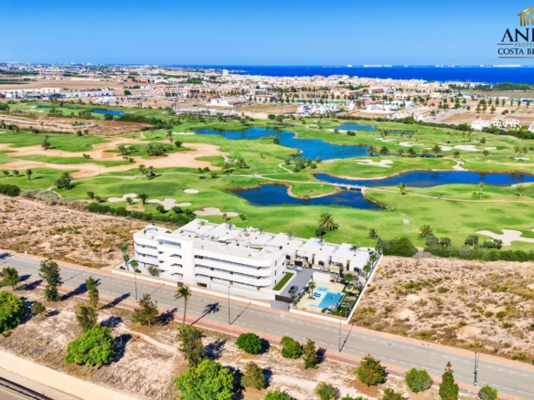 Poznaj doskonałą harmonię natury, designu i komfortu w tej wyjątkowej inwestycji mieszkaniowej, położonej bezpośrednio przy prestiżowym polu golfowym La Serena Golf w Los Alcázares.