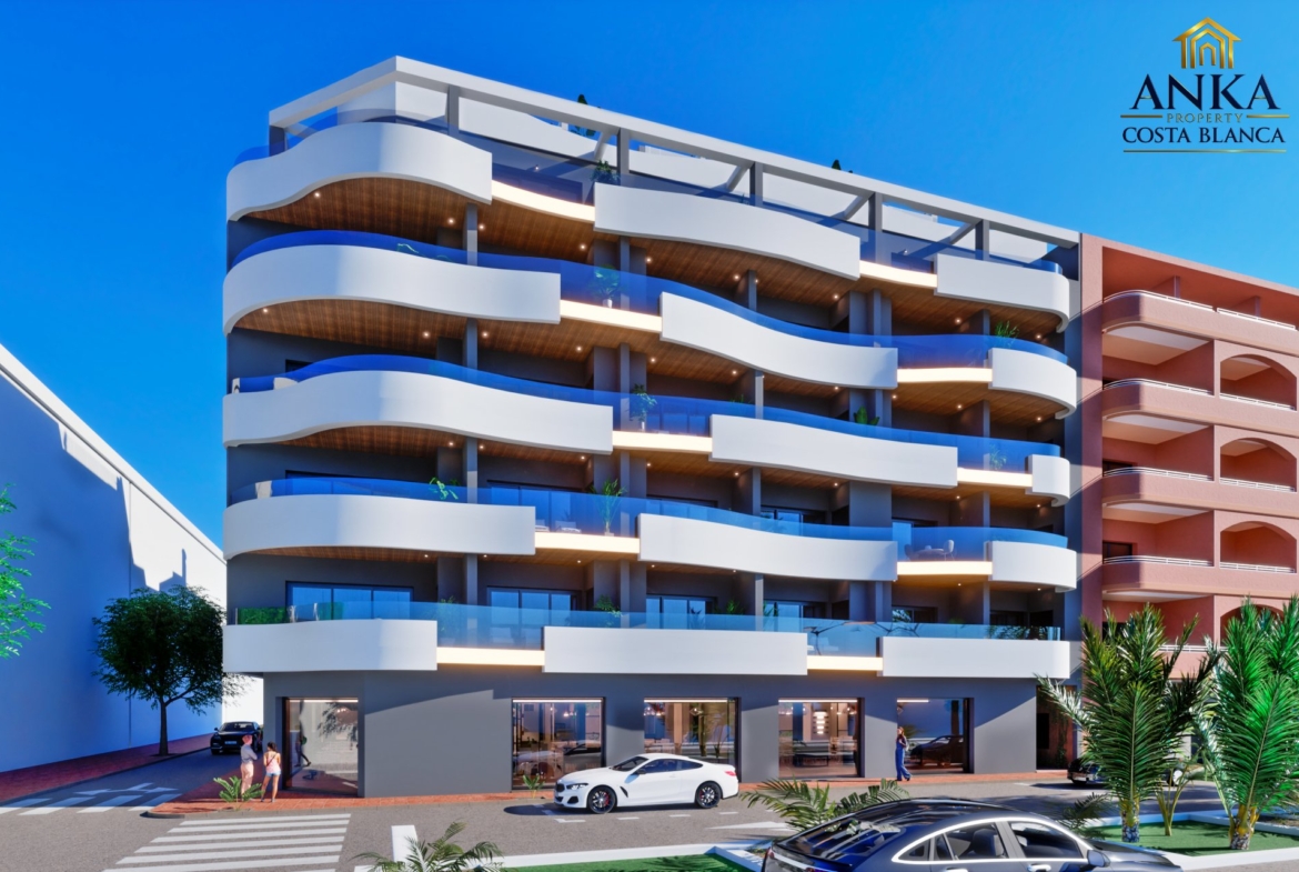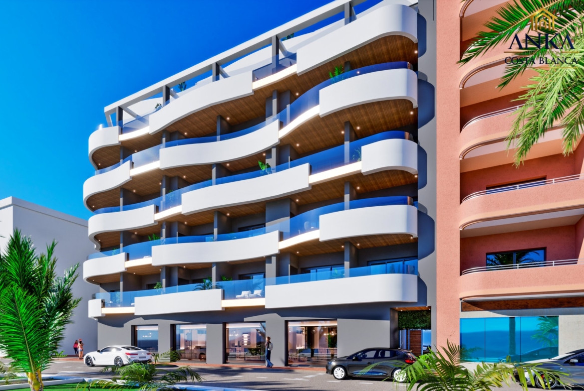 Odkryj te zachwycające, nowo wybudowane apartamenty w Torrevieja, położone zaledwie kilka kroków od Morza Śródziemnego i wszystkich niezbędnych udogodnień. To wyjątkowa okazja, aby cieszyć się widokiem na morze w jednej z najbardziej popularnych części miasta. Projekt łączy nowoczesny design, przestronne wnętrza i wysokiej jakości wykończenia, tworząc idealny nadmorski dom.