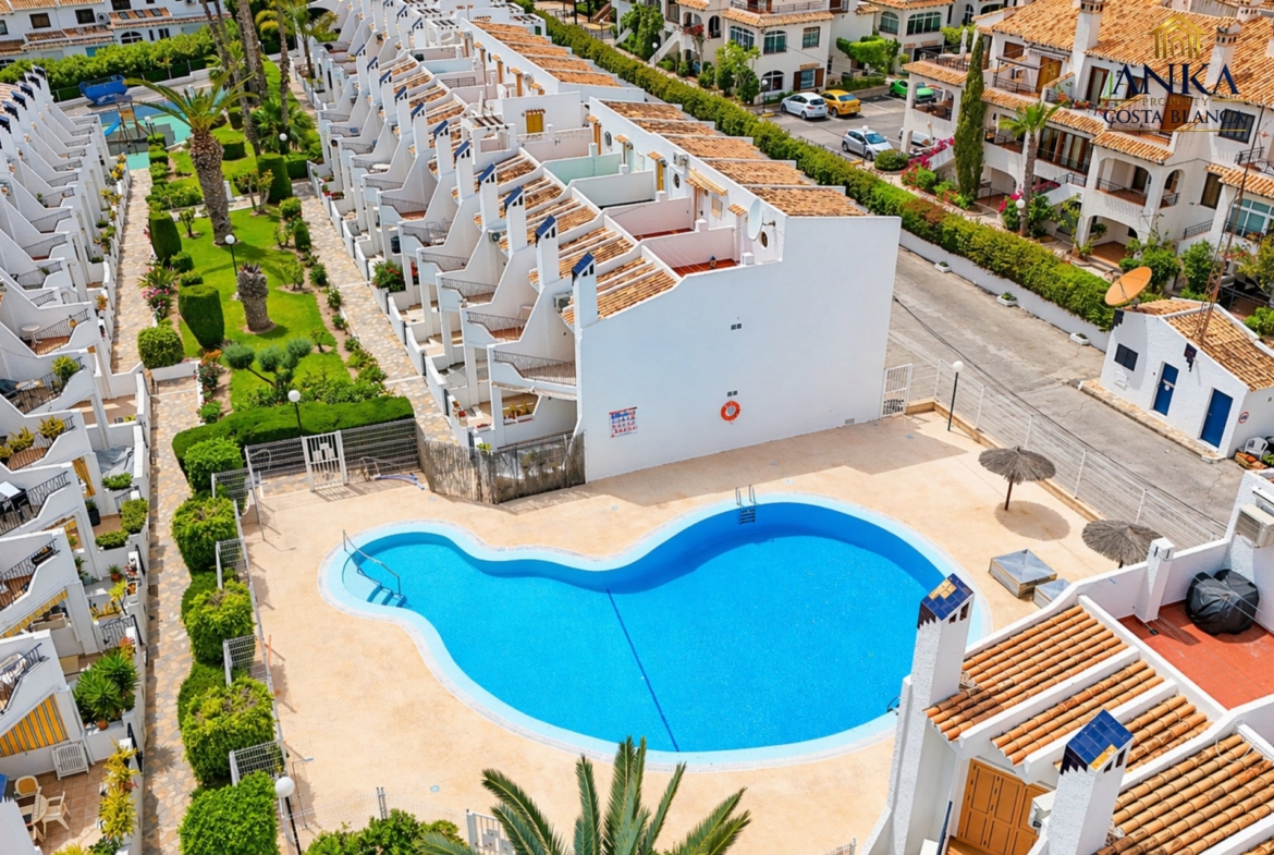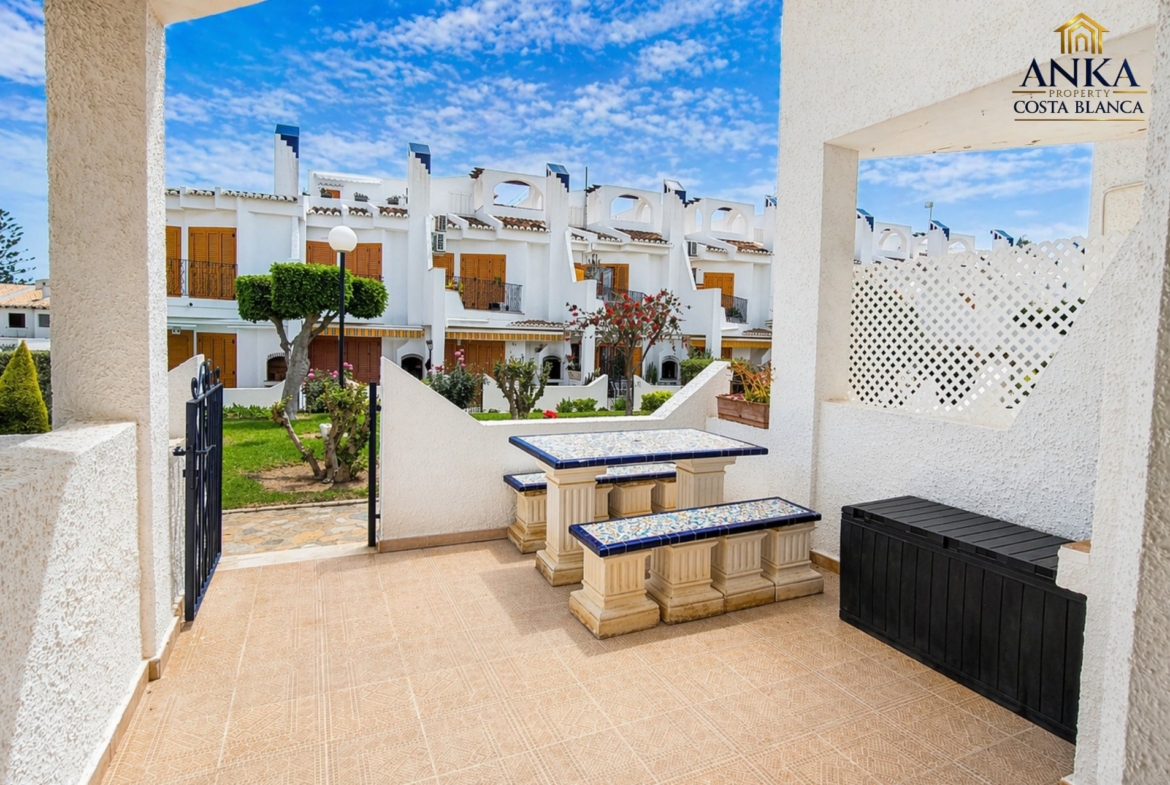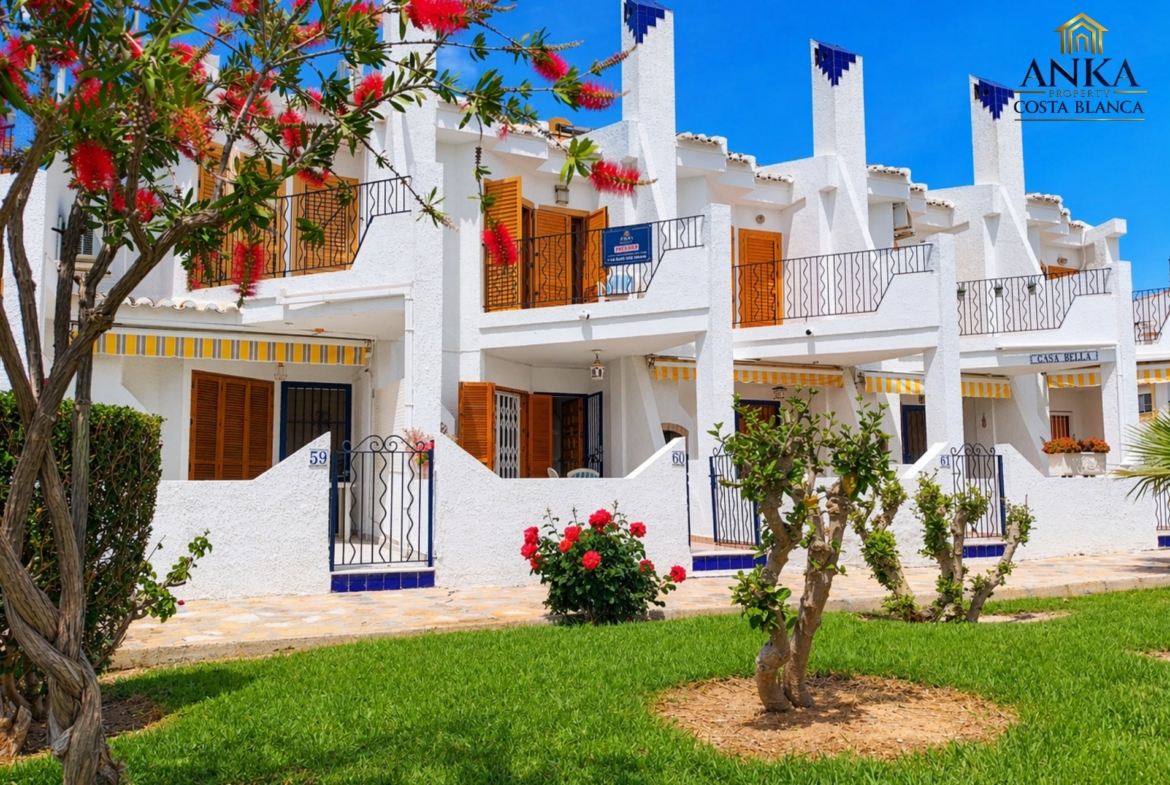 This bright and spacious townhouse is located in the popular residential complex Cristalmar, just 500 meters from La Caleta Beach and Cabo Roig Beach, and within walking distance to the Cabo Roig Strip.