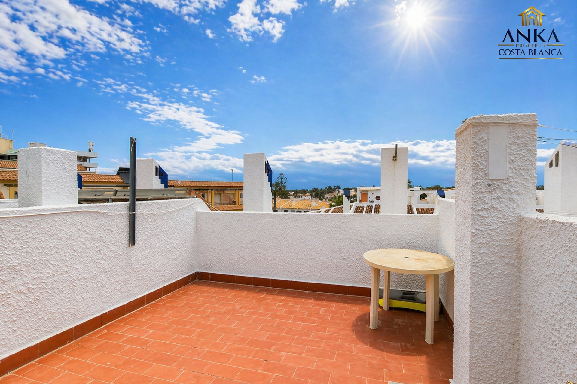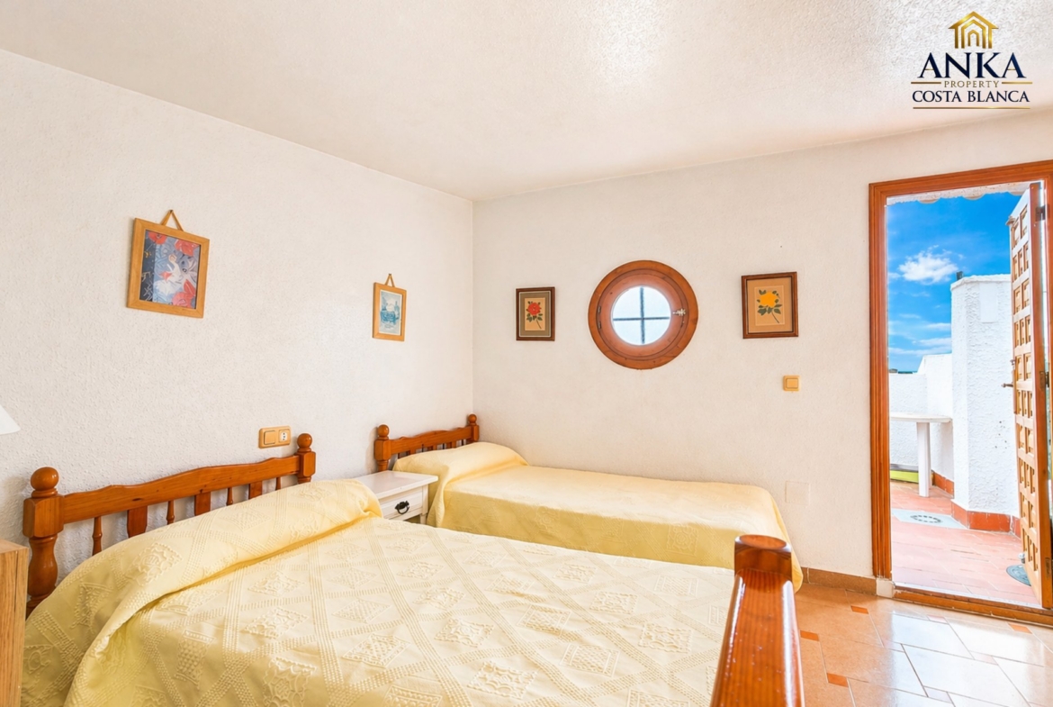 The top floor includes a third bedroom with direct access to a private solarium with open views, perfect for relaxing and enjoying the Mediterranean climate.