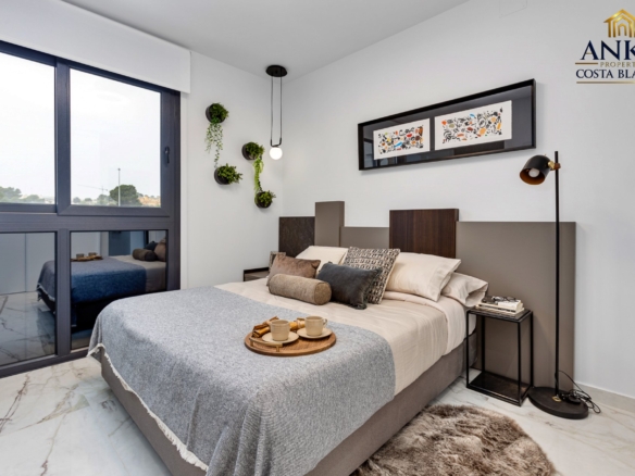 Each property comes fully furnished and equipped, ensuring a smooth transition for new owners. Simply arrive with your personal items and settle in. The development enjoys a prime location within walking distance of restaurants, cafés, supermarkets, and shops. Several golf courses and major shopping centres lie just a short drive away, while the renowned Blue Flag beaches of Guardamar del Segura, Torrevieja, and Orihuela Costa are easily accessible for seaside enjoyment.