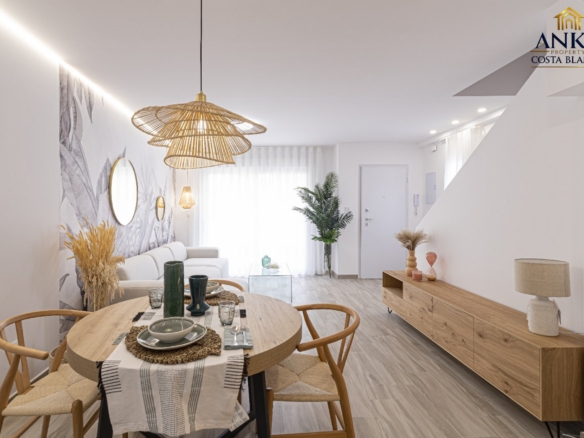 Inside, the homes feature high quality materials including stoneware flooring, modern carpentry and fully equipped kitchens with stainless steel appliances. Bathrooms are finished with contemporary walk in shower trays, while air conditioning and LED lighting provide comfort and energy efficiency throughout the year.