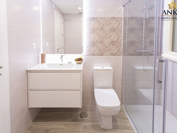 The modern building rises 9 floors high and includes a total of 90 stylish apartments. Many properties benefit from beautiful terraces where you can relax and enjoy the Mediterranean climate. The location is truly exceptional, with beaches from both seas just steps away, offering a lifestyle that is simply unique in Spain.