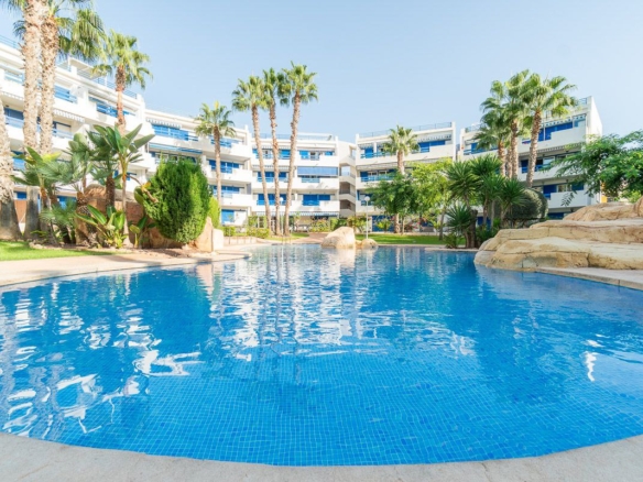 Welcome to this elegant and fully furnished apartment located in the popular residential complex La Calma, just a short walk from the beaches of Playa Flamenca and the vibrant Zenia Boulevard shopping center.