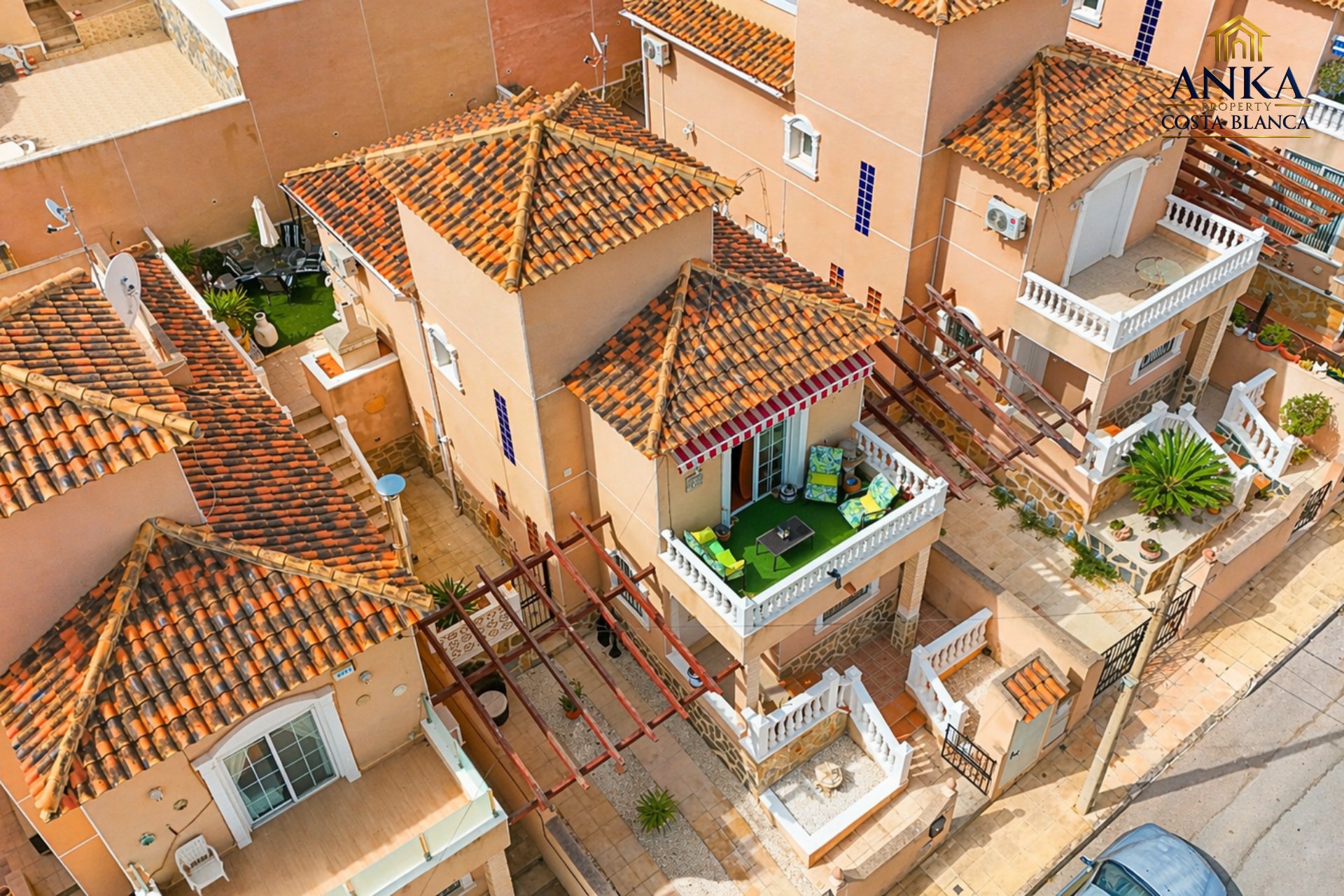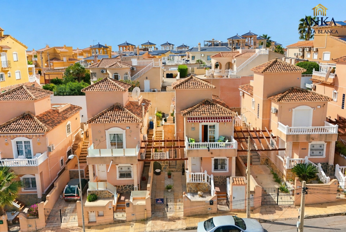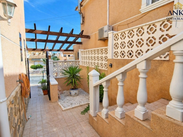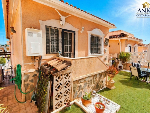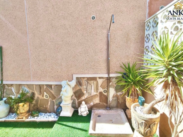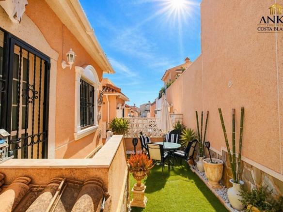 This attractive detached villa is set on a 175 m² plot in the sought after area of El Galán, Blue Lagoon, offering excellent outdoor space and natural light throughout the day thanks to its east, south and west orientation. The private garden enjoys sun from morning to evening and features a barbecue area, outdoor shower and off road parking within the plot. A sun awning provides comfortable shade during the warmer hours, allowing you to fully enjoy the outdoor living space year round.