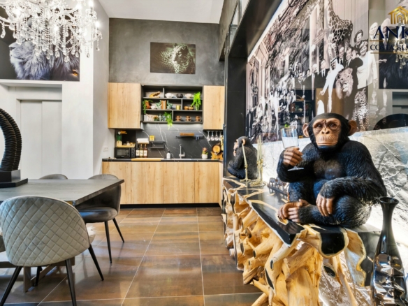 Upon arrival, a centennial bonsai tree welcomes you into an atmosphere of serenity and sophistication. The main level flows effortlessly with open-plan living, dining, and kitchen areas that extend to the exterior through floor-to-ceiling windows. From here, an infinity pool merges with the horizon, while landscaped terraces invite you to enjoy Mediterranean living at its finest.