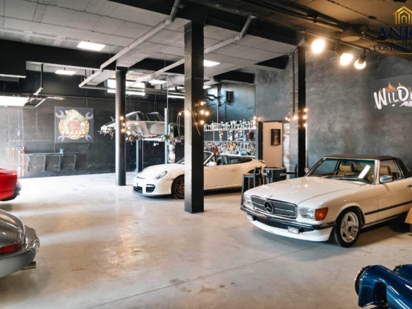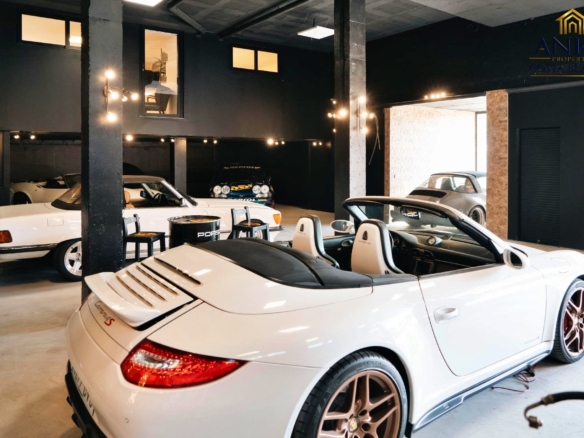 Entertainment and leisure are elevated to new heights. The poolside area includes a fully equipped summer kitchen, lounge spaces, hammocks, and a fire pit for evenings under the stars. The basement is equally impressive, with a 9-car garage that can transform into a private club, a temperature-controlled wine cellar, and a separate office space. A private minigolf course completes the unique lifestyle this home provides.