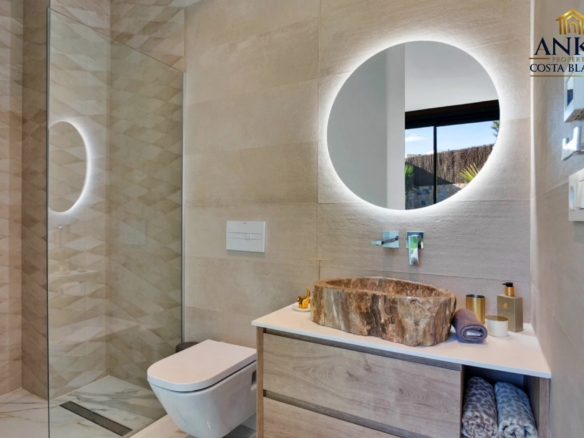 Designed with precision and built with the finest materials, the villa incorporates underfloor heating in bathrooms, zoned climate control, solar panels, ambient lighting, and 24-hour security – ensuring both comfort and peace of mind.