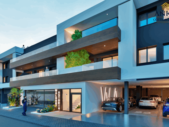 Each apartment features a bright, modern, and functional layout, with open-plan living and dining areas, a fully equipped kitchen, and spacious terraces that flood the interiors with natural light. Bedrooms come with built-in wardrobes for optimal storage, and bathrooms are finished with high-quality fittings.