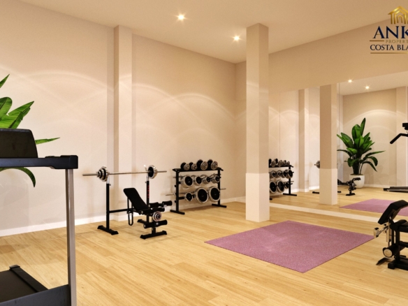 Choose between 1, 2, or 3 bedrooms with 1–2 bathrooms, open-plan kitchens, and fitted wardrobes. All homes include pre-installation for air conditioning and hold an energy label A for efficiency. Penthouses enjoy private solariums, while ground floor units benefit from spacious terraces.